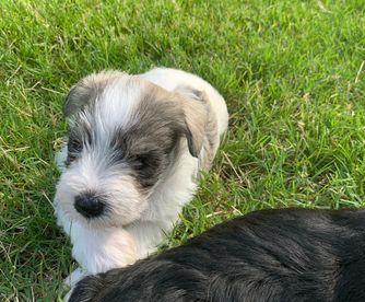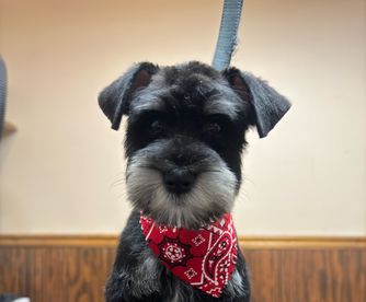 Our puppies are salt and pepper. Colors will vary depending on the parent dogs.