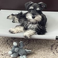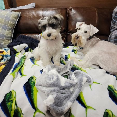 Our breeding program is special because it is a family endeavor focused on the joy and experience of raising puppies. We prioritize the well-being and happiness of our dogs, ensuring they live wonderful lives as pets. We breed our schnauzers, particularly our beautiful girl Elsa, only once a year and only while she is healthy and young, to produce healthy and happy puppies.