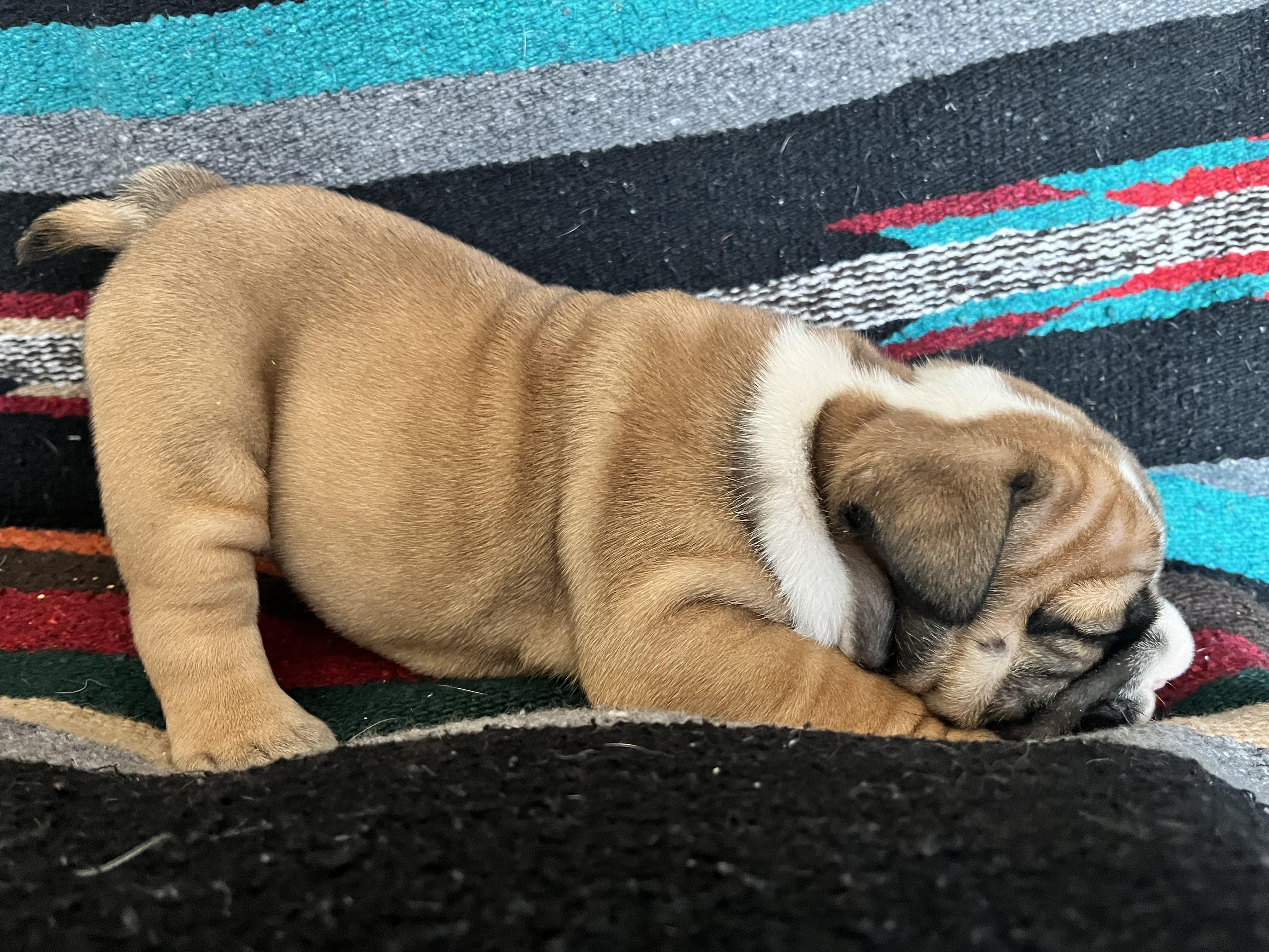 Clyde is a male Bulldog. Carefully selected as a great representative of his breed, Holly decided to make him part of their program. Holly has passed Good Dog’s screening process, which involved a review of their breeding practices, environment, and the mental and physical health of their dogs.