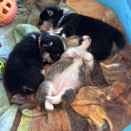 Our Pembroke Welsh Corgi puppies include sable, black and tan, and white and black. Colors will vary depending on the parent dogs.