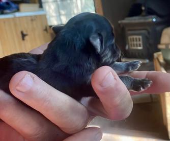 Our puppies include black and white, chocolate, and black. Colors will vary depending on the parent dogs.