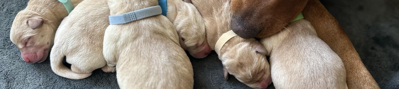 Our puppies include black, chocolate, and yellow. Colors will vary depending on the parent dogs.