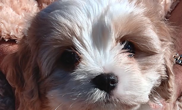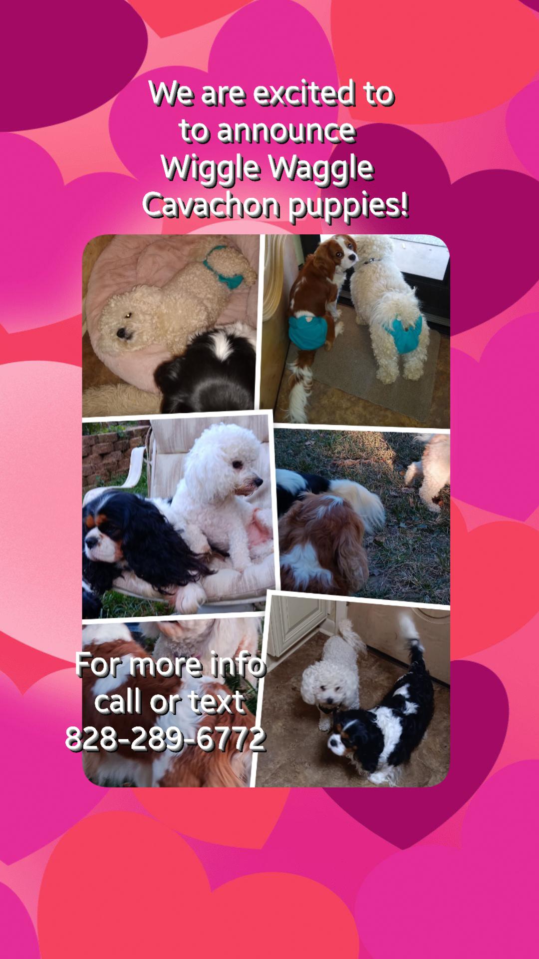Our Cavachon puppies include black and white and blenheim. Cavalier King Charles Spaniel puppies include blenheim and tri-color. Colors will vary depending on the parent dogs.