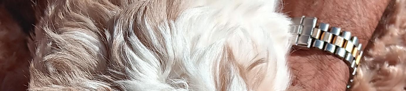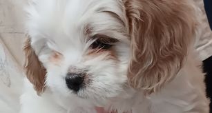 Curly is a delightful young dog/stud. With this litter, he has successfully sired 3 litters of Cavachons with our AKC registered females who have champion pedigrees. He is white, strong, playful. and an all-round great dog.