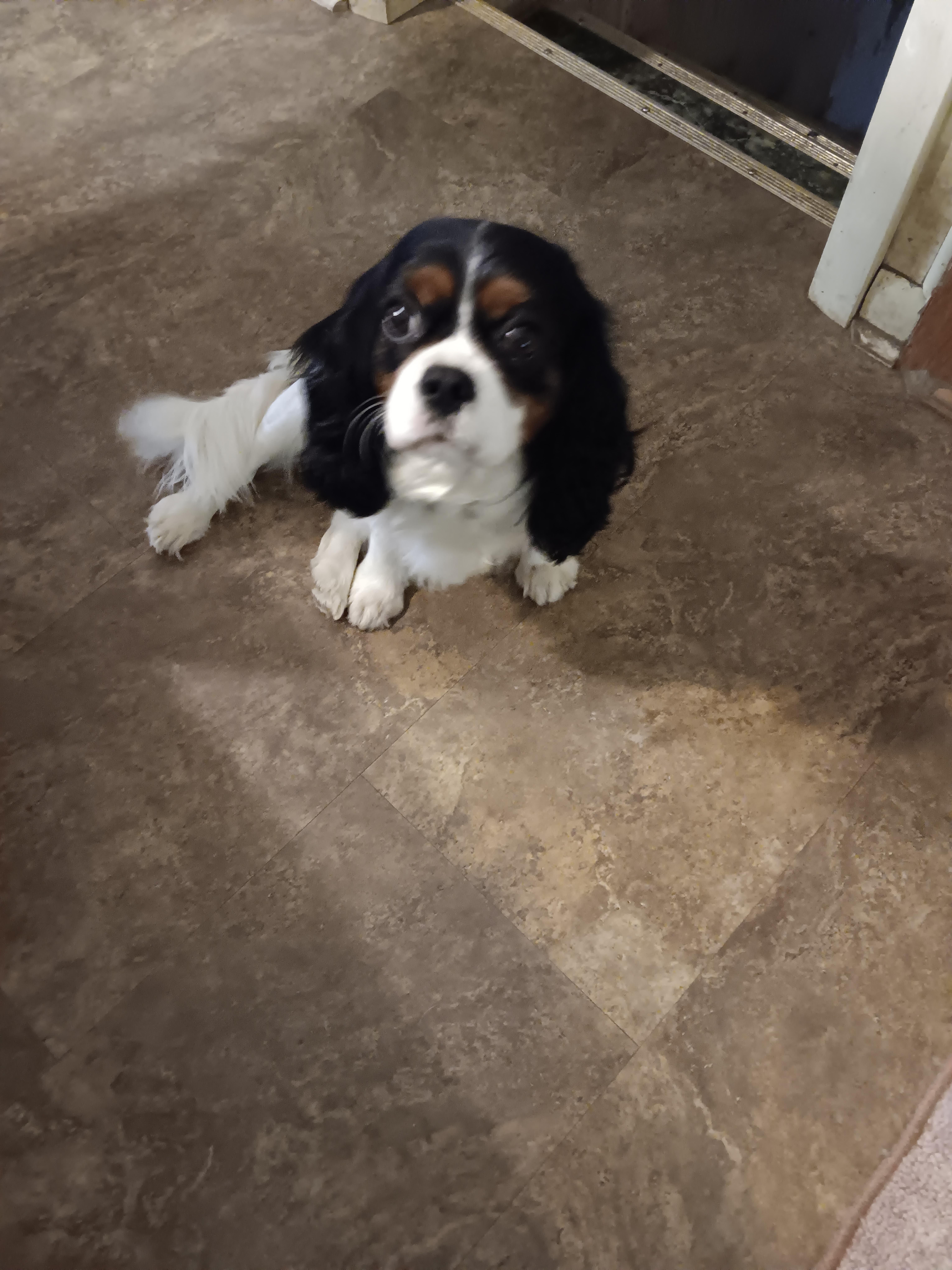 Blenheim female, AKC registered with champion bloodlines on both sides. Beautiful, active, and playful with her pups.