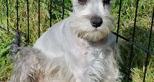 Cinder is a female Miniature Schnauzer. Carefully selected as a great representative of her breed, Ramona decided to make her part of their program. Ramona has passed Good Dog’s screening process, which involved a review of their breeding practices, environment, and the mental and physical health of their dogs.