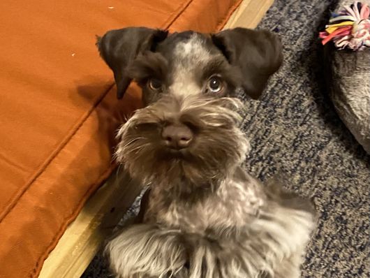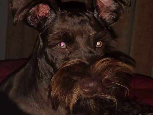 Cocoa is a female Miniature Schnauzer. Carefully selected as a great representative of her breed, Ramona decided to make her part of their program. Ramona has passed Good Dog’s screening process, which involved a review of their breeding practices, environment, and the mental and physical health of their dogs.
