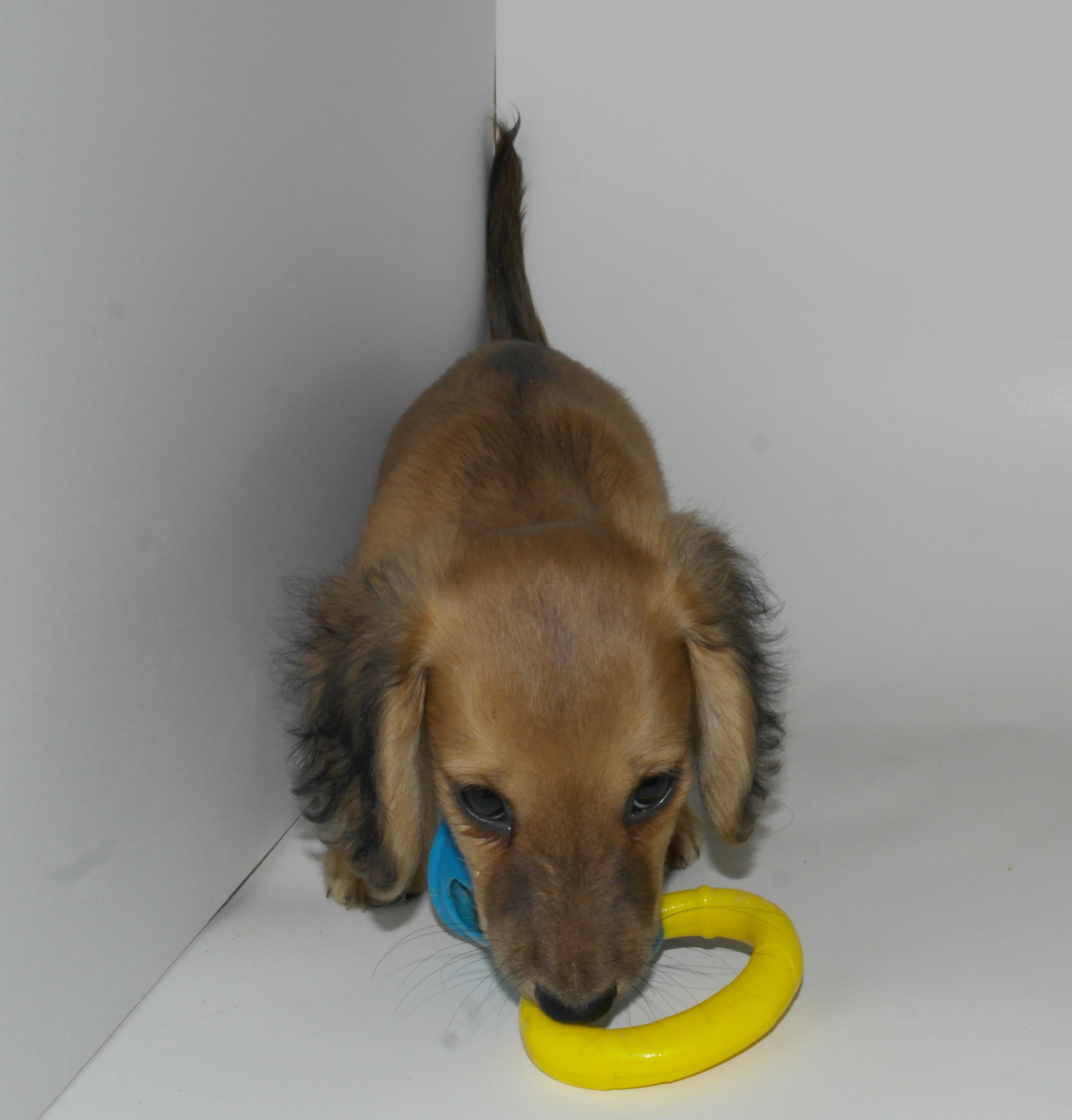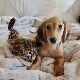 I am absolutely obsessed with my little golden dachshund that I got from Kasey. She was extremely easy to work with, highly communicative and her puppies are amazing quality. I got my little fuzzy friend from her about three weeks ago and I couldn’t be more happy. He’s my best friend and the sweetest boy in the entire world. He’s changed my life and so has Kasey. I seriously couldn’t have wished for a better dog and breeder!