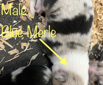 Our puppies include black and blue merle. Colors will vary depending on the parent dogs.