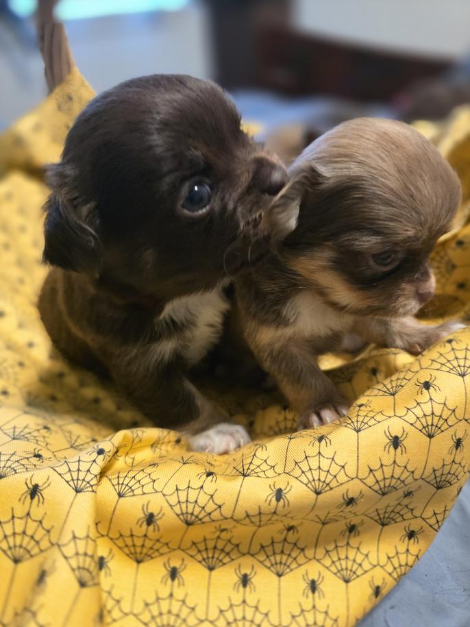 I started out breeding with my mother in 2002. We both fell in love with the long hair chihuahua their beautiful but long coats. Since then my mother has breed them and I periodically breed them.