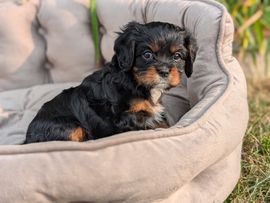 After many years of raising Cavaliers 4 years ago, me and my husband decided to start our own breeding program and this currently has brought us to a successful litter of blackened tan puppies we look forward to sharing with everyone.