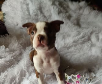 We got our Boston Terrier from Teressa, and it was a great experience from start to finish. The price was very fair, the puppy was in excellent health, and it was clear that Teressa genuinely cares for her dogs. You can tell she puts a lot of love and attention into raising them right.
