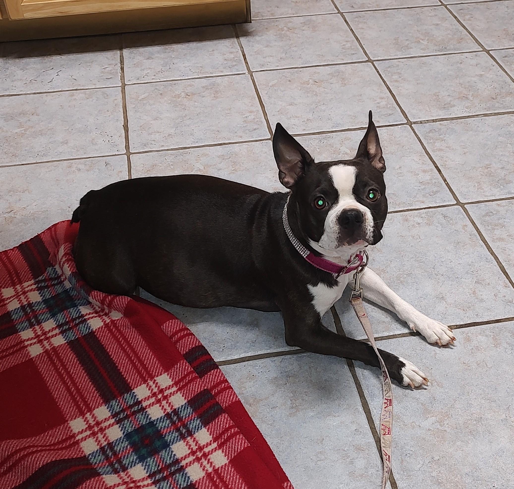 Gurt is a female Boston Terrier. Carefully selected as a great representative of her breed, Teressa decided to make her part of their program. Teressa has passed Good Dog’s screening process, which involved a review of their breeding practices, environment, and the mental and physical health of their dogs.