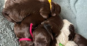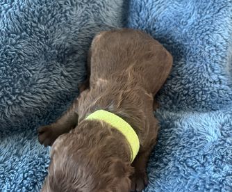 Our puppies are chocolate. Colors will vary depending on the parent dogs.