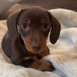 Lucy is a female Dachshund. Carefully selected as a great representative of her breed, Gwynne decided to make her part of their program. Gwynne has passed Good Dog’s screening process, which involved a review of their breeding practices, environment, and the mental and physical health of their dogs.