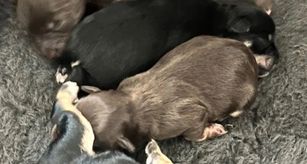 Our puppies include liver and black and silver. Colors will vary depending on the parent dogs.