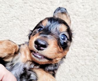 Penny is a female Dachshund. Carefully selected as a great representative of her breed, Kelly decided to make her part of their program. Kelly has passed Good Dog’s screening process, which involved a review of their breeding practices, environment, and the mental and physical health of their dogs.