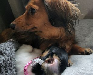 Penny is a female Dachshund over 3 years old. Carefully selected as a great representative of her breed, Kelly decided to make her part of their program. Kelly has passed Good Dog’s screening process, which involved a review of their breeding practices, environment, and the mental and physical health of their dogs.