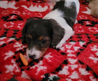 “They come vet checked, dewormed, limited akc papers, contract for health, puppy package (which is a bunch of puppy stuff to help start you off), and information folder. Deposit is required when the contract is signed and at the first visit/interview.”