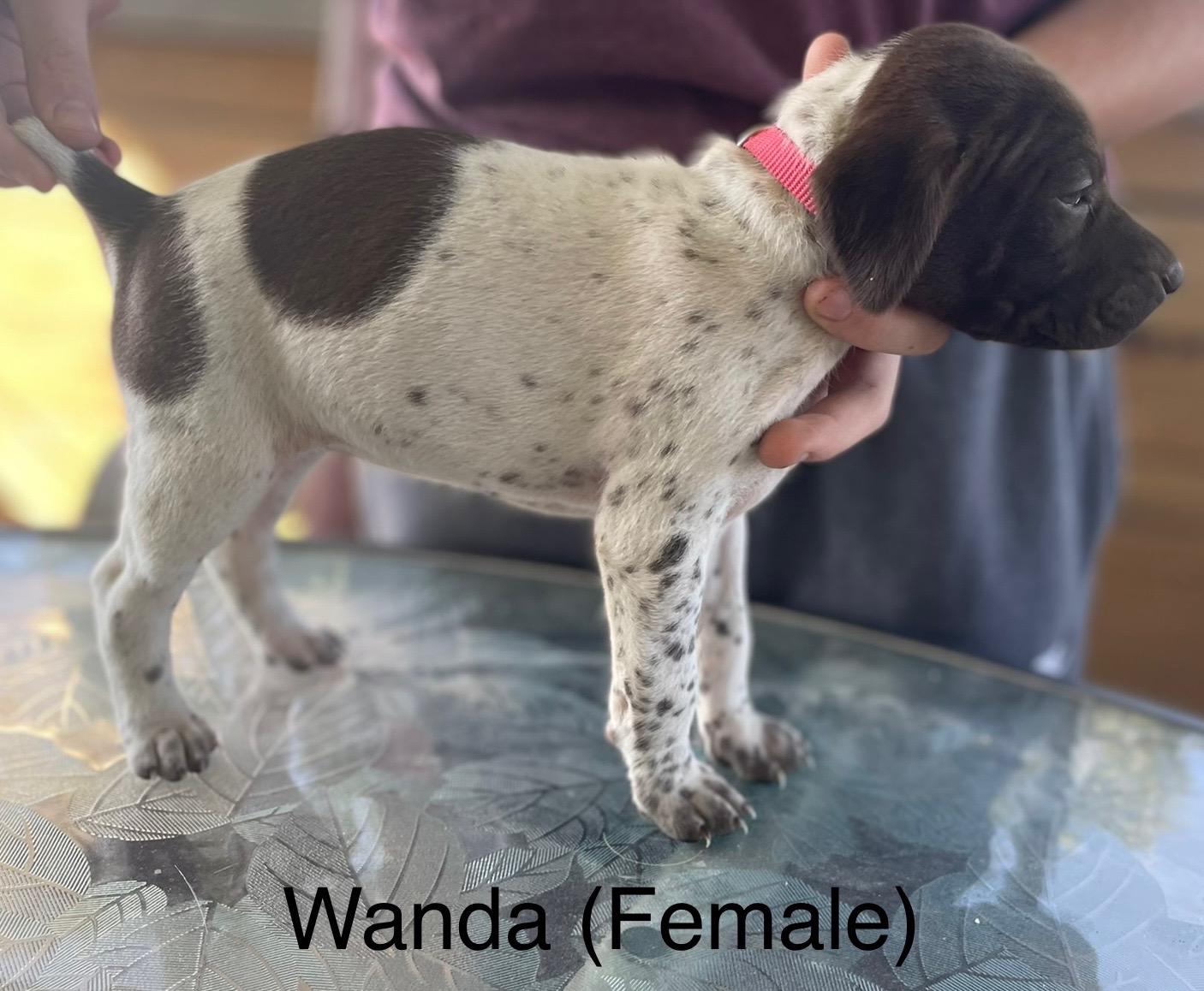 Our puppies include liver and white and black and white. Colors will vary depending on the parent dogs.
