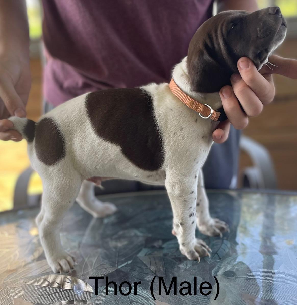 Loki is a male German Shorthaired Pointer. Carefully selected as a great representative of his breed, Justin decided to make him part of their program. Justin has passed Good Dog’s screening process, which involved a review of their breeding practices, environment, and the mental and physical health of their dogs.