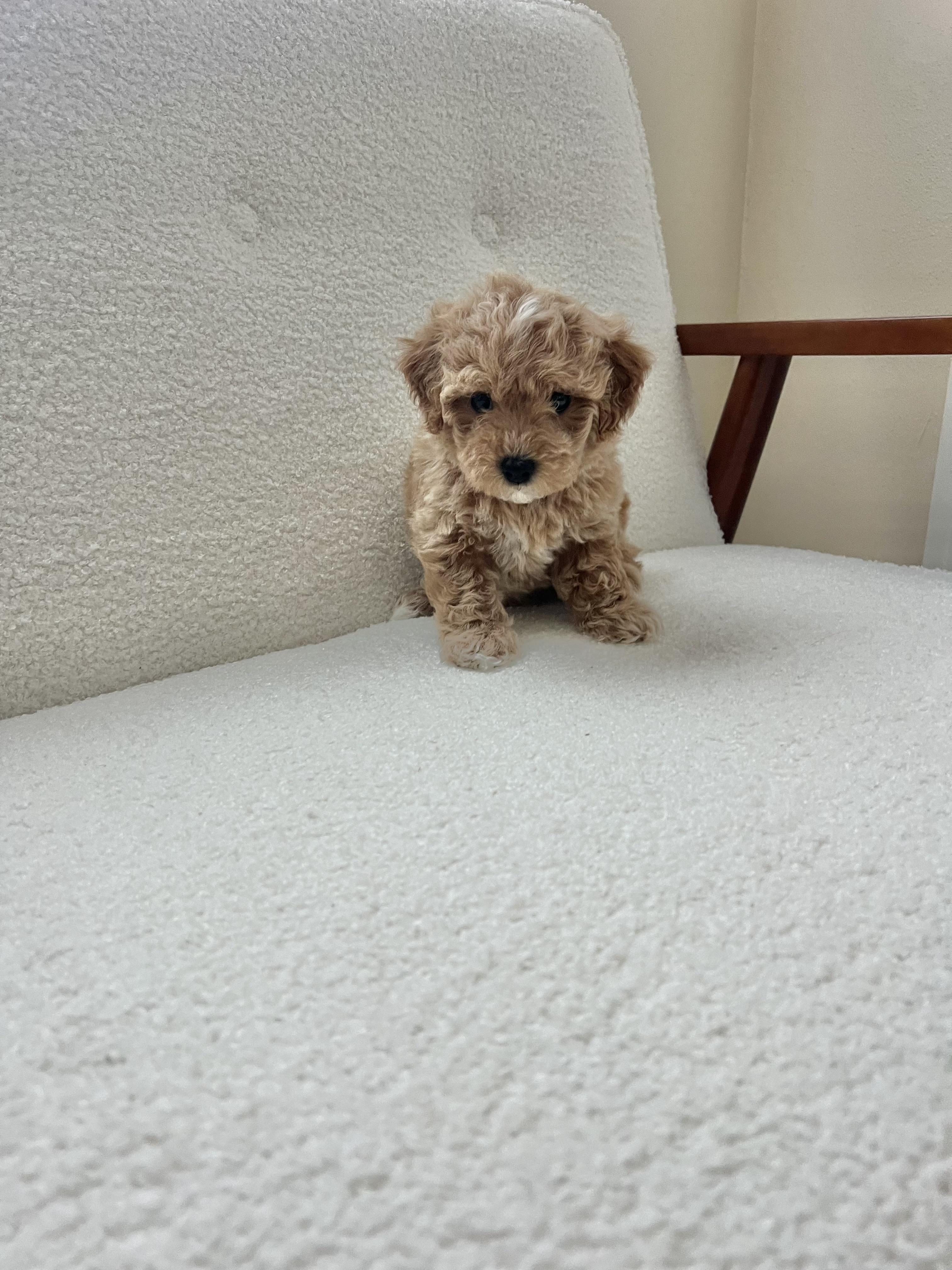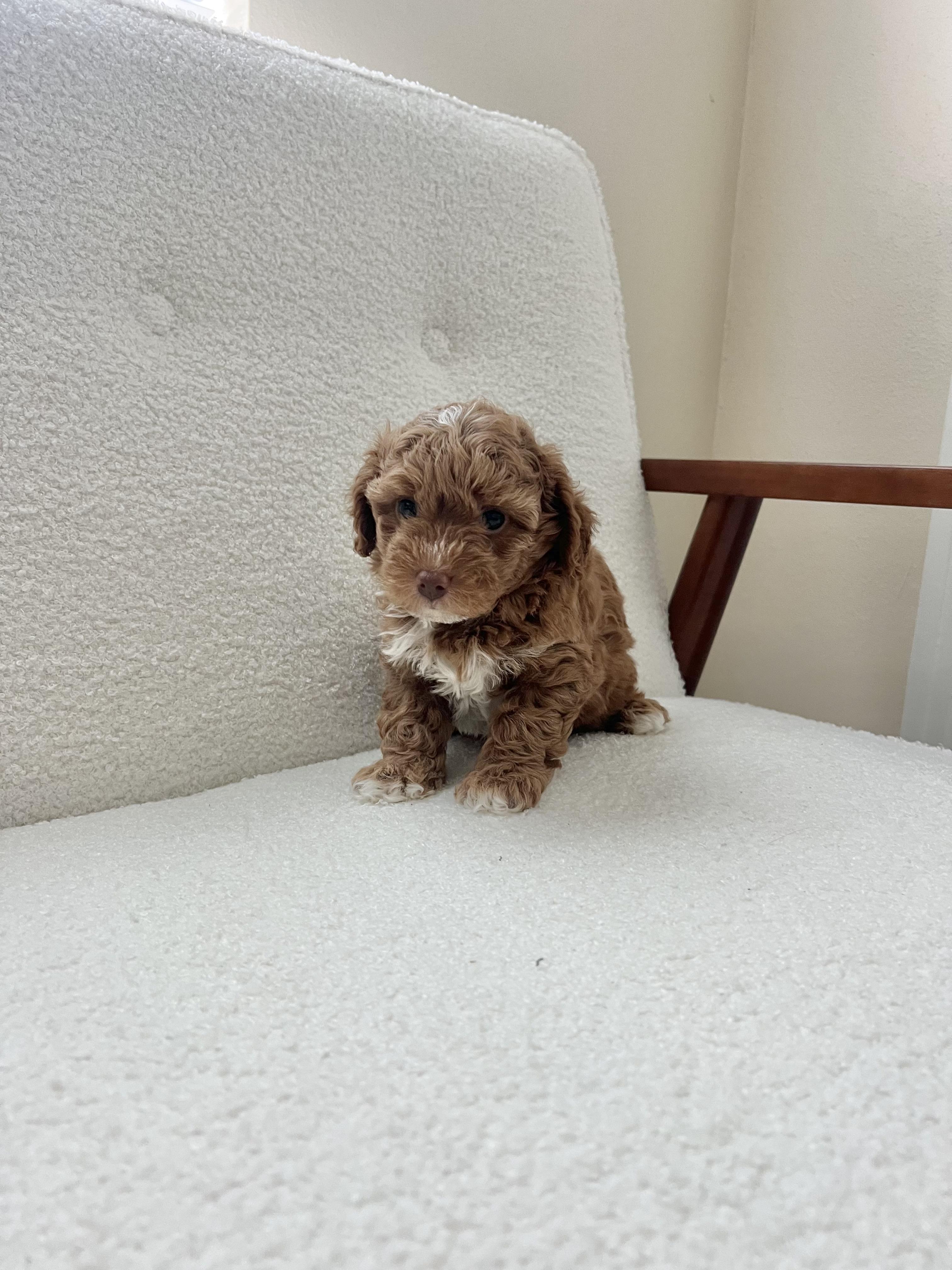 Maya is a female Cockapoo. Carefully selected as a great representative of her breed, Jessica decided to make her part of their program. Jessica has passed Good Dog’s screening process, which involved a review of their breeding practices, environment, and the mental and physical health of their dogs.