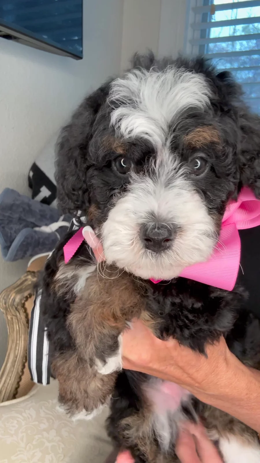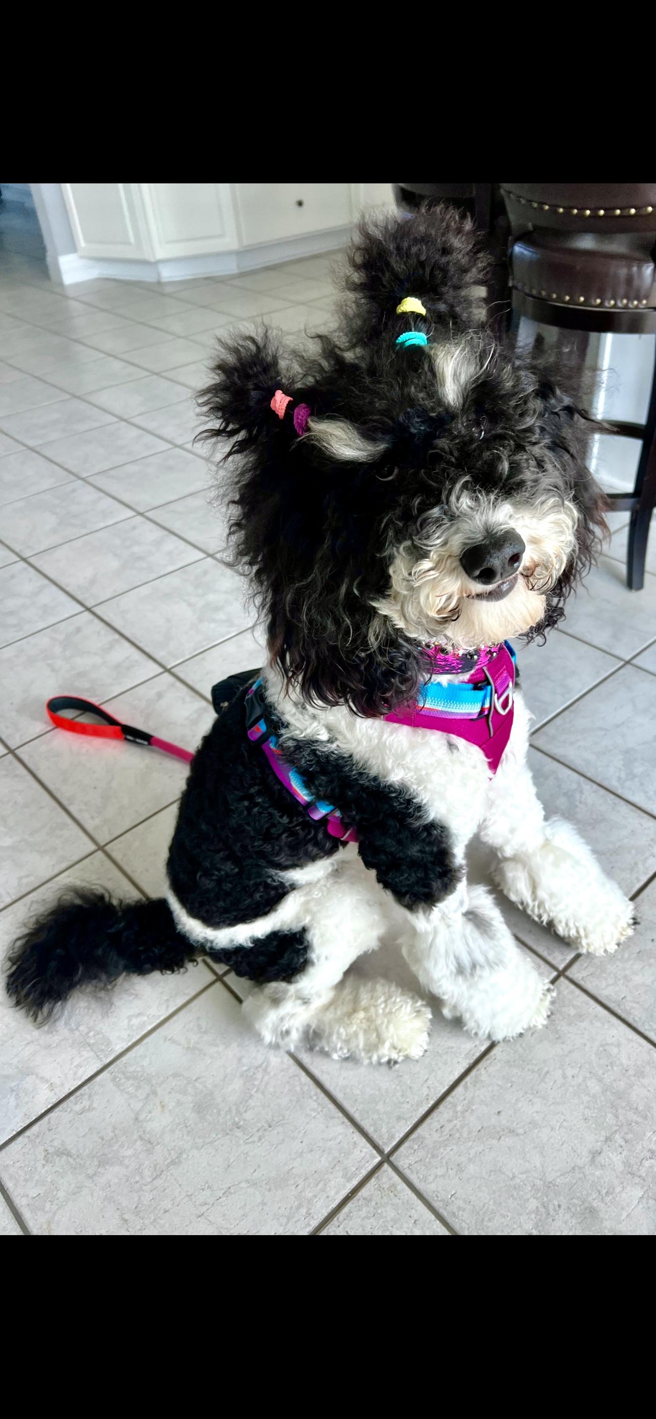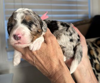 Pippa is a female Bernedoodle. Carefully selected as a great representative of her breed, Barbie decided to make her part of their program. Barbie has passed Good Dog’s screening process, which involved a review of their breeding practices, environment, and the mental and physical health of their dogs.