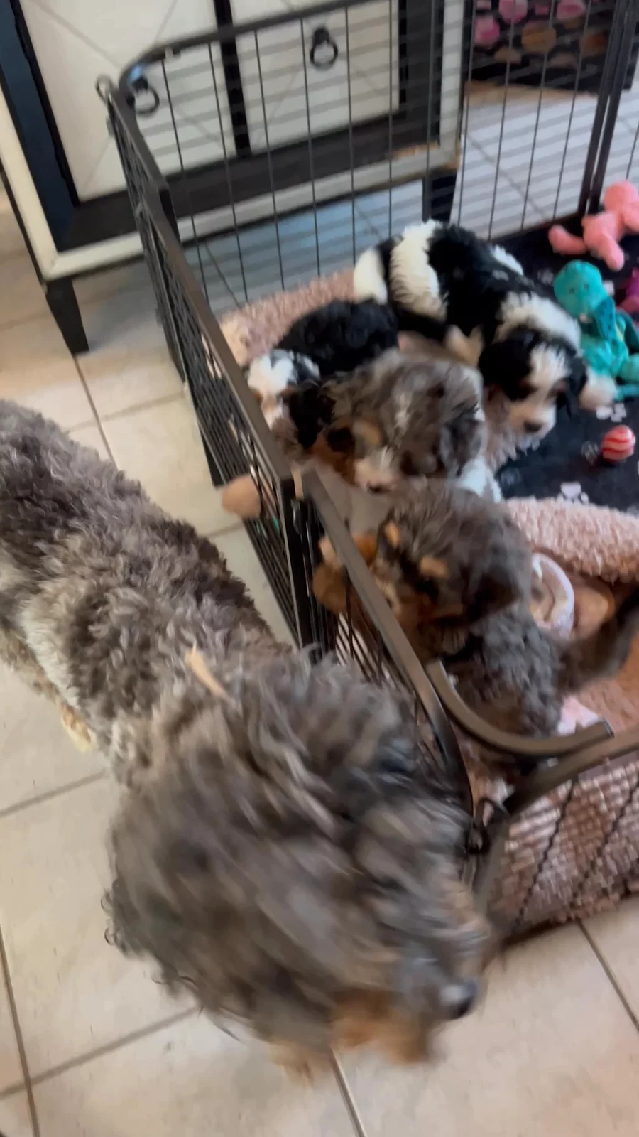 Arrows babies are doing amazing! Great with potty training and lots of socializing with family and friends. They are super silly, snuggly cuddle bugs a d very smart. These babies will be ready to head to their forever homes in a few weeks. They come from both parents that are fully health checked from OFA’s -PennHip and genetic testings. Raised in home with all the other adult dogs.
