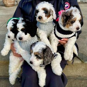 Our puppies include mini and medium sizes. Sizes will vary depending on the parent dogs.