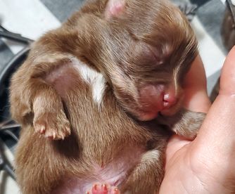 I stay home with them. I pour all my heart and soul into them. I love them as if they were going to stay with me forever. I give a gift basket to send home with the puppy. The new pawparent will also get a birth certificate with their paw print on it.