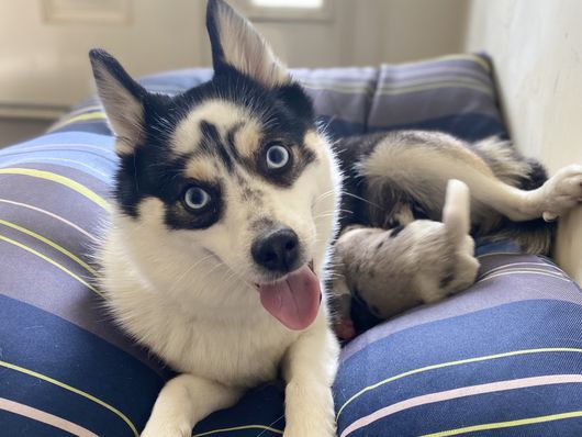 Heart is a female Pomsky. Carefully selected as a great representative of her breed, Tee decided to make her part of their program. Tee has passed Good Dog’s screening process, which involved a review of their breeding practices, environment, and the mental and physical health of their dogs.
