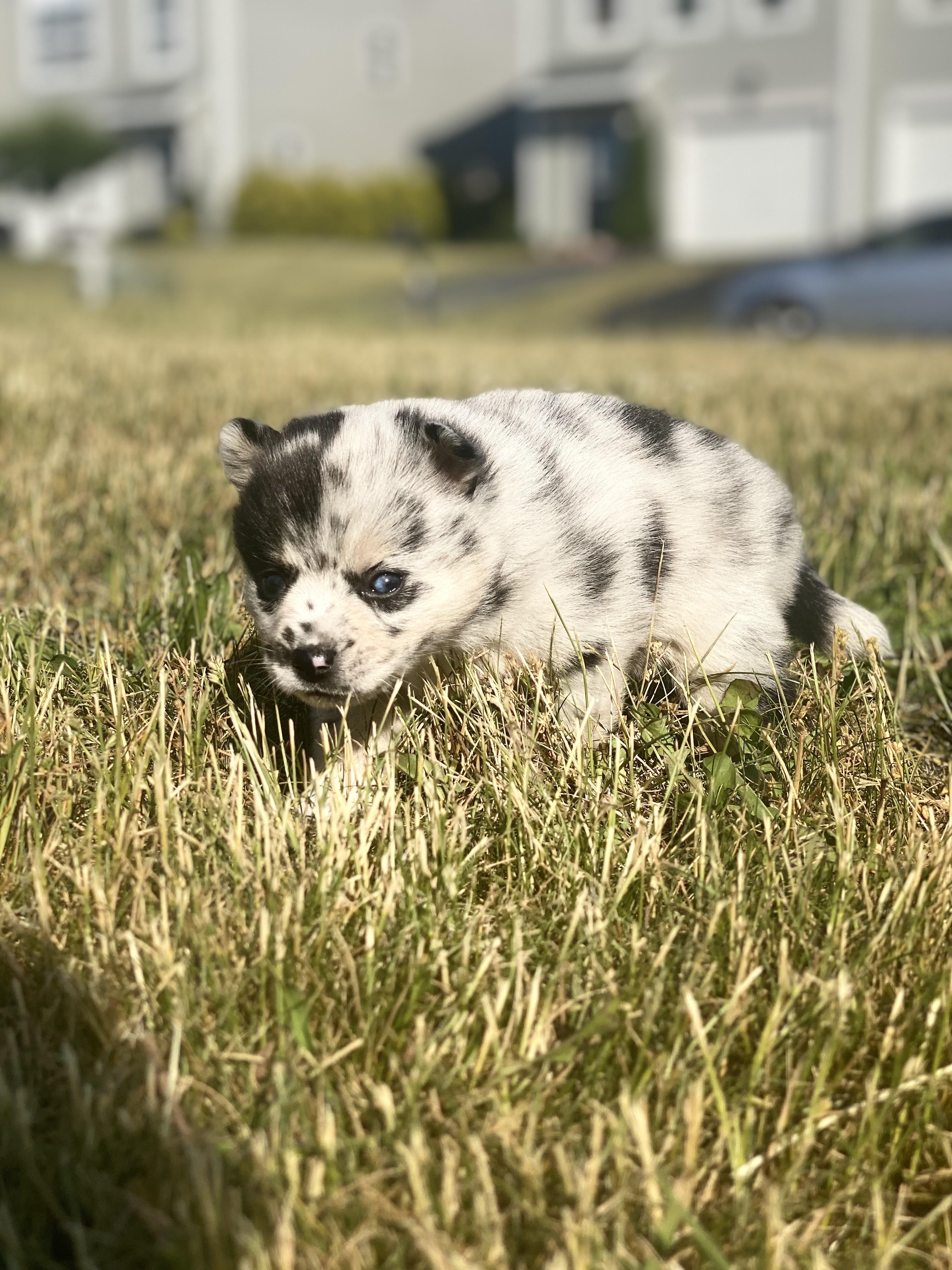 Our primary focus is proper socialization with “little hands”. We pride ourselves with the program we created, utilizing my 2 children under 5 and our personal commitment to Pomskys, for being the best family dog!