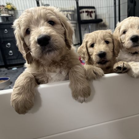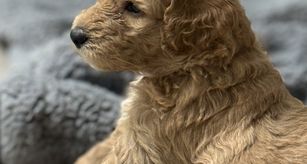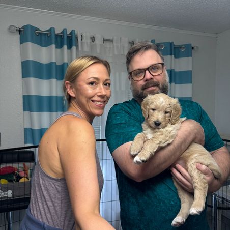 I attended grooming school and groomed dogs for a few years which brought me so much joy and happiness and I realized how much of a love for breeding I would have. Shortly after, we brought Arwynn into our lives. A beautiful, sweet, smart, playful and loyal F1 Goldendoodle and The Puppy Chateau was born.