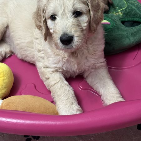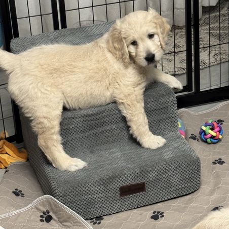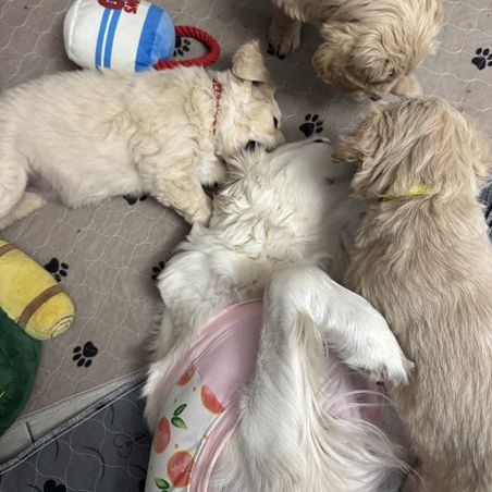 Our puppies include cream, apricot, and red. Colors will vary depending on the parent dogs.