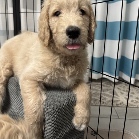 Aerith is a gorgeous AKC registered English Cream Golden Retriever. She is a beautiful girl with the most gentle, empathetic and heart warming personality. She makes us laugh everyday. Aerith has all the recommended health clearances including OFA hips, elbows and eyes.