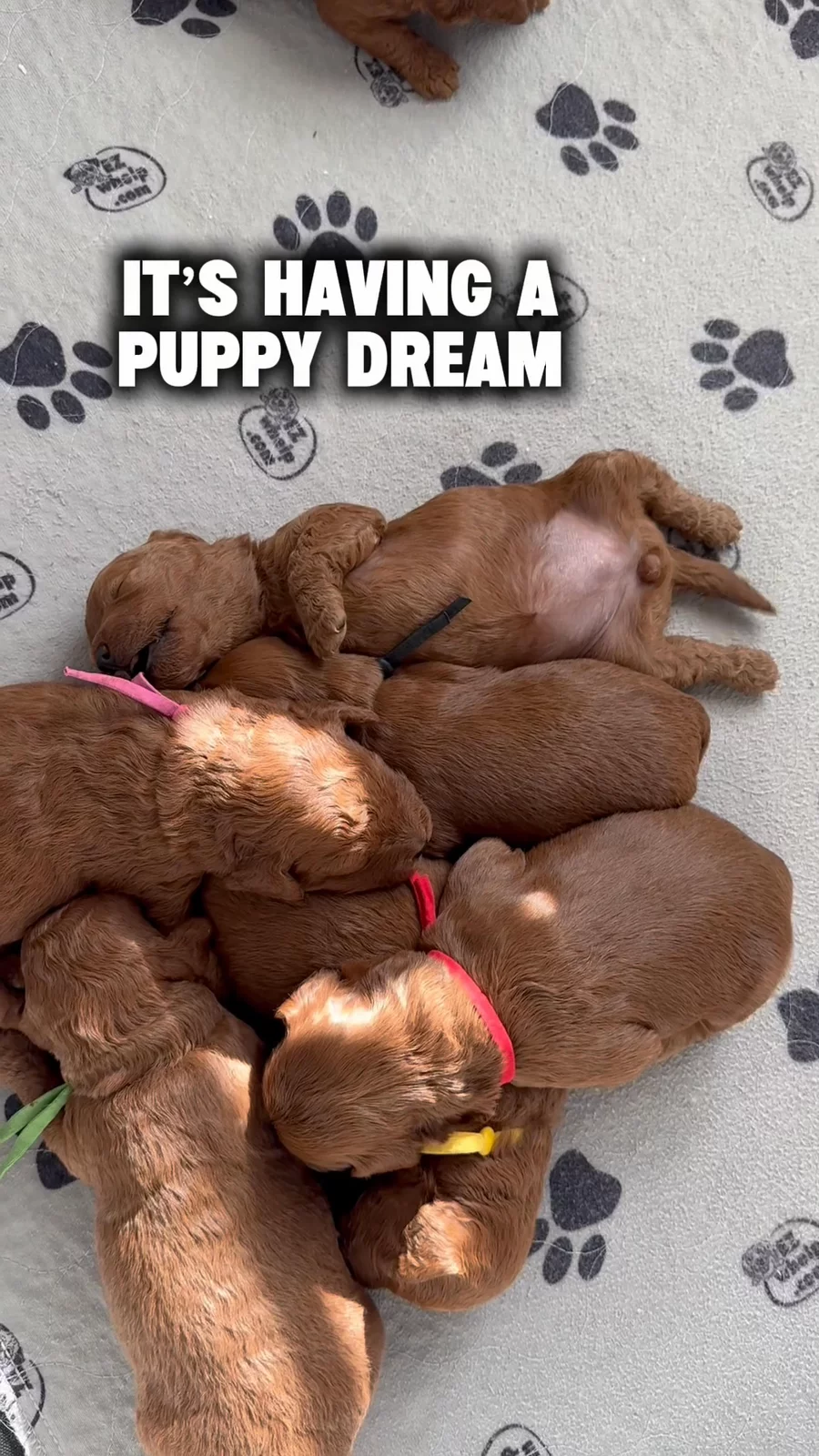 ✨ The puppies are two weeks old! ✨This tiny girl loves nothing more than snoozing on her back, paws in the air, dreaming the loveliest puppy dreams. 🌙🐾 Being this cute must be exhausting. 🥰💤