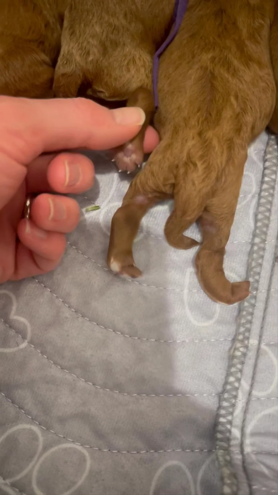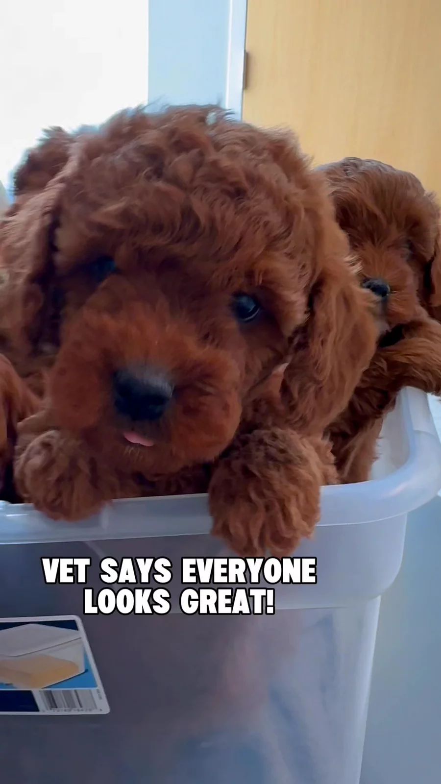 4 days old and already going on their first adventure! Our sweet Goldendoodle babies had their vet exams and dew claw removals today. 💕 The vet says they’re healthy and happy… I say they’re cute and snuggly. 🐾 It’s a win all around! 🩺🐶