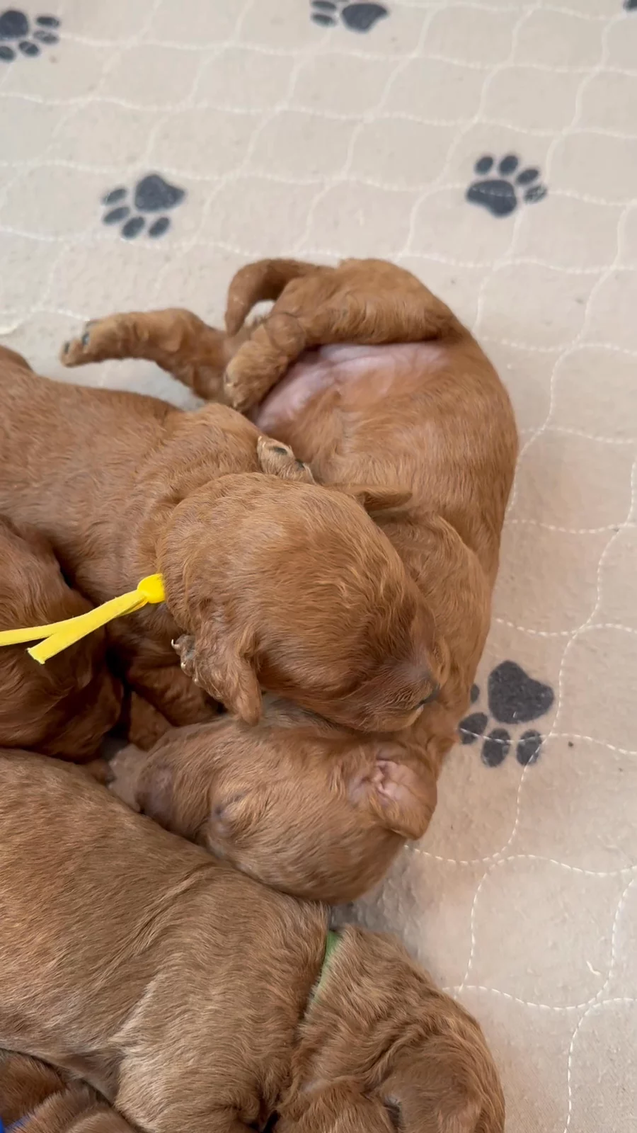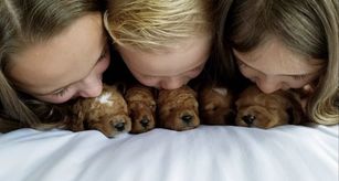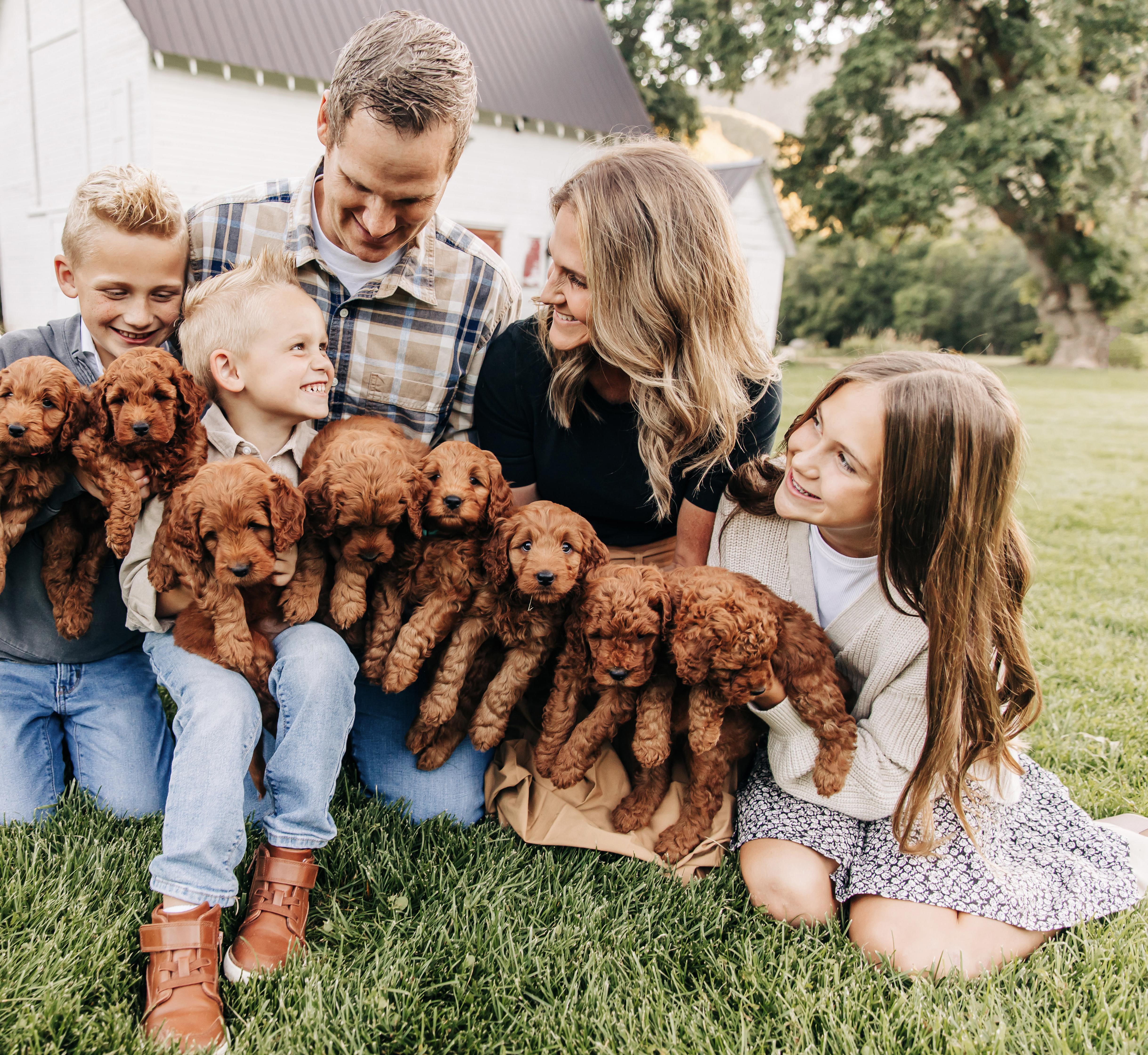 My parents bred poodles while I was growing up so I was familiar with the lifestyle. I bought my first Goldendoodle to help heal my broken heart after I had several miscarriages. Shortly after, I learned I would have to do IVF to have a baby. I bred my Goldendoodle to help pay for the procedure and I fell in love with breeding dogs! I eventually quit my job as a nurse to breed dogs full time.