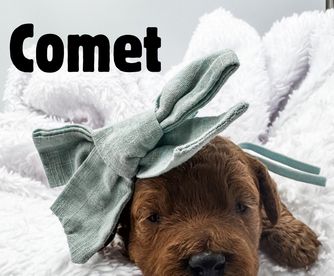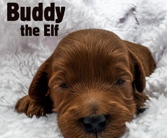 Penny has a very soft wavy, red coat. She loves to play tennis (aka chase tennis balls while her family plays tennis) and snuggle up to the kids in her family. She is friendly and sweet. The perfect Goldendoodle.