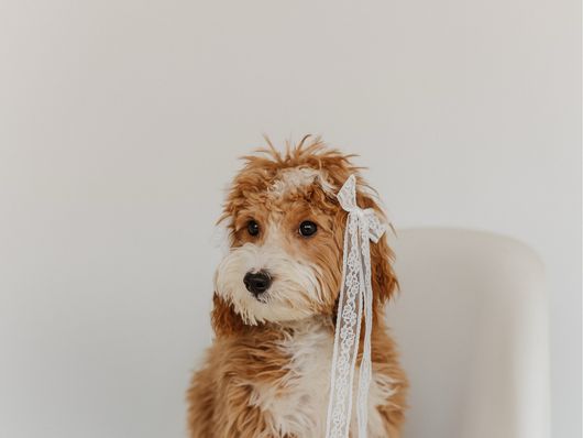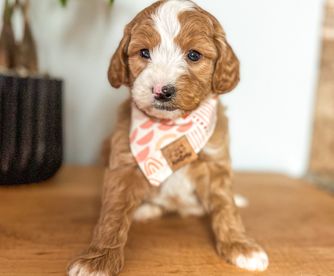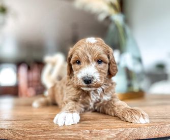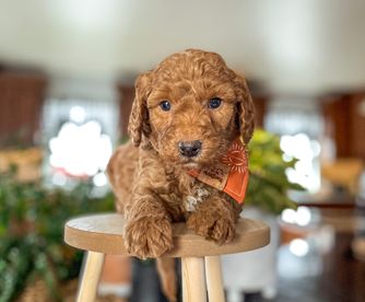 Wednesday is an F1B mini goldendoodle, she resides in a guardian home where her owners are utterly captivated by her bubbly personality. Known for her affectionate nature, Wednesday always seeks closeness to her human companions and thrives on human interactions.
