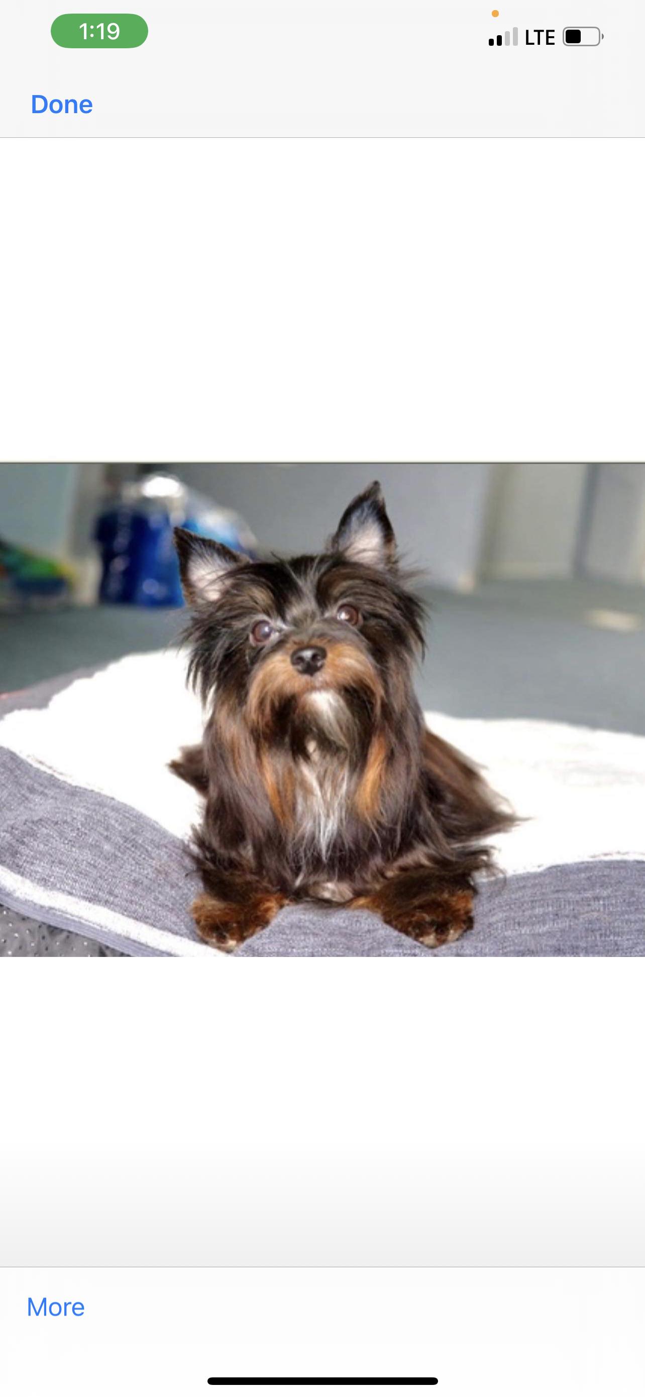Bella is a female Morkie. Carefully selected as a great representative of her breed, DeAnna decided to make her part of their program. DeAnna has passed Good Dog’s screening process, which involved a review of their breeding practices, environment, and the mental and physical health of their dogs.
