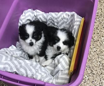 Our puppies include black and blue merle. Colors will vary depending on the parent dogs.