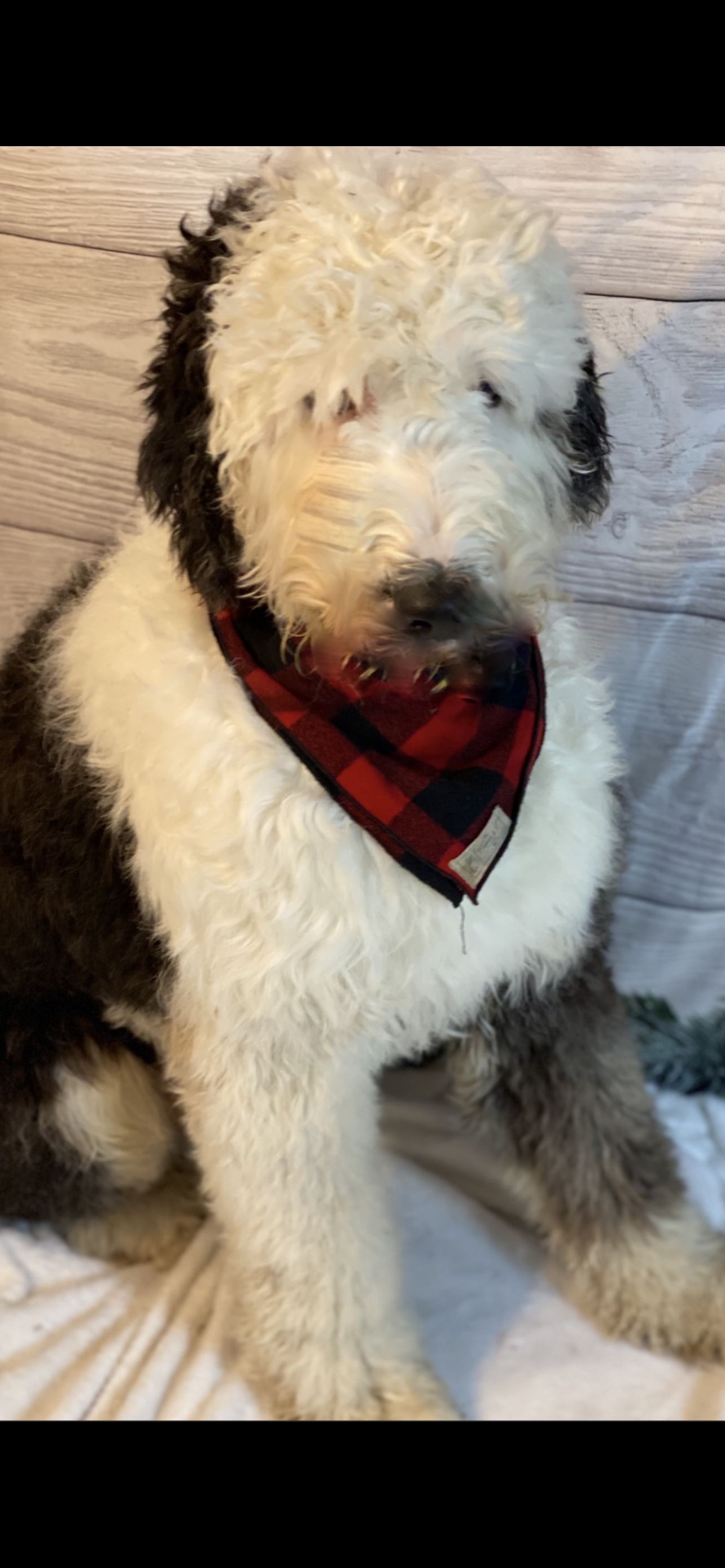 Whiskey Joe is a male Sheepadoodle. Carefully selected as a great representative of his breed, Kellie decided to make him part of their program. Kellie has passed Good Dog’s screening process, which involved a review of their breeding practices, environment, and the mental and physical health of their dogs.