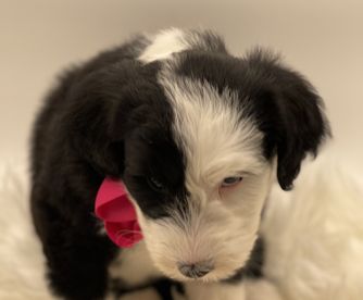 Cali is a female Sheepadoodle. Carefully selected as a great representative of her breed, Kellie decided to make her part of their program. Kellie has passed Good Dog’s screening process, which involved a review of their breeding practices, environment, and the mental and physical health of their dogs.