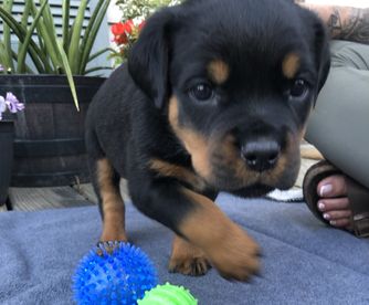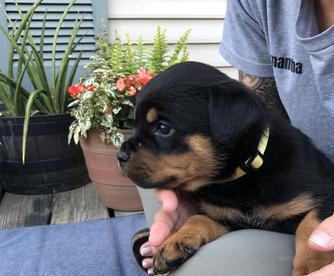 We worked with Melissa when we got celery almost two years ago. We were very pleased with the responsiveness received from her. She also showed she really cares about her pups with timely vet visits, reviewing who’s taking her pups home, and with all the work she puts into them (acclimation to normal home environment things like TV, vacuum, as well as appropriate socializing). With all that said we have reached out to see about getting a second rottie from her to add to our family.