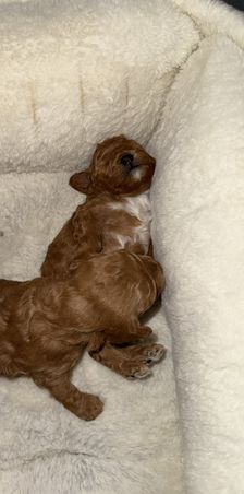 Our puppies are red. Colors will vary depending on the parent dogs.