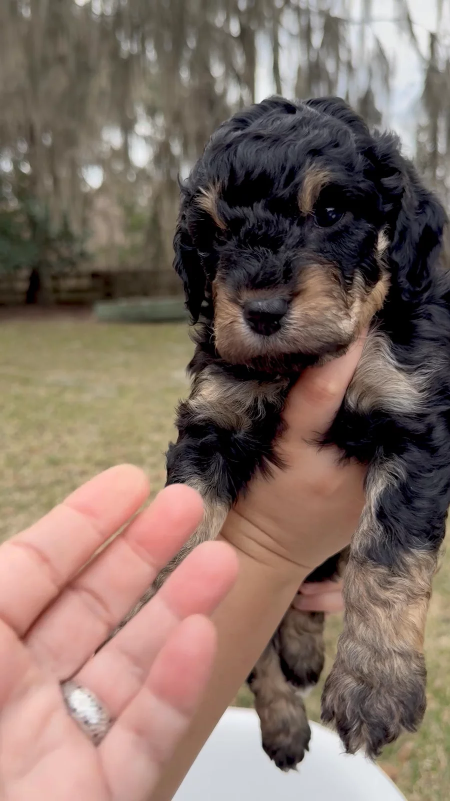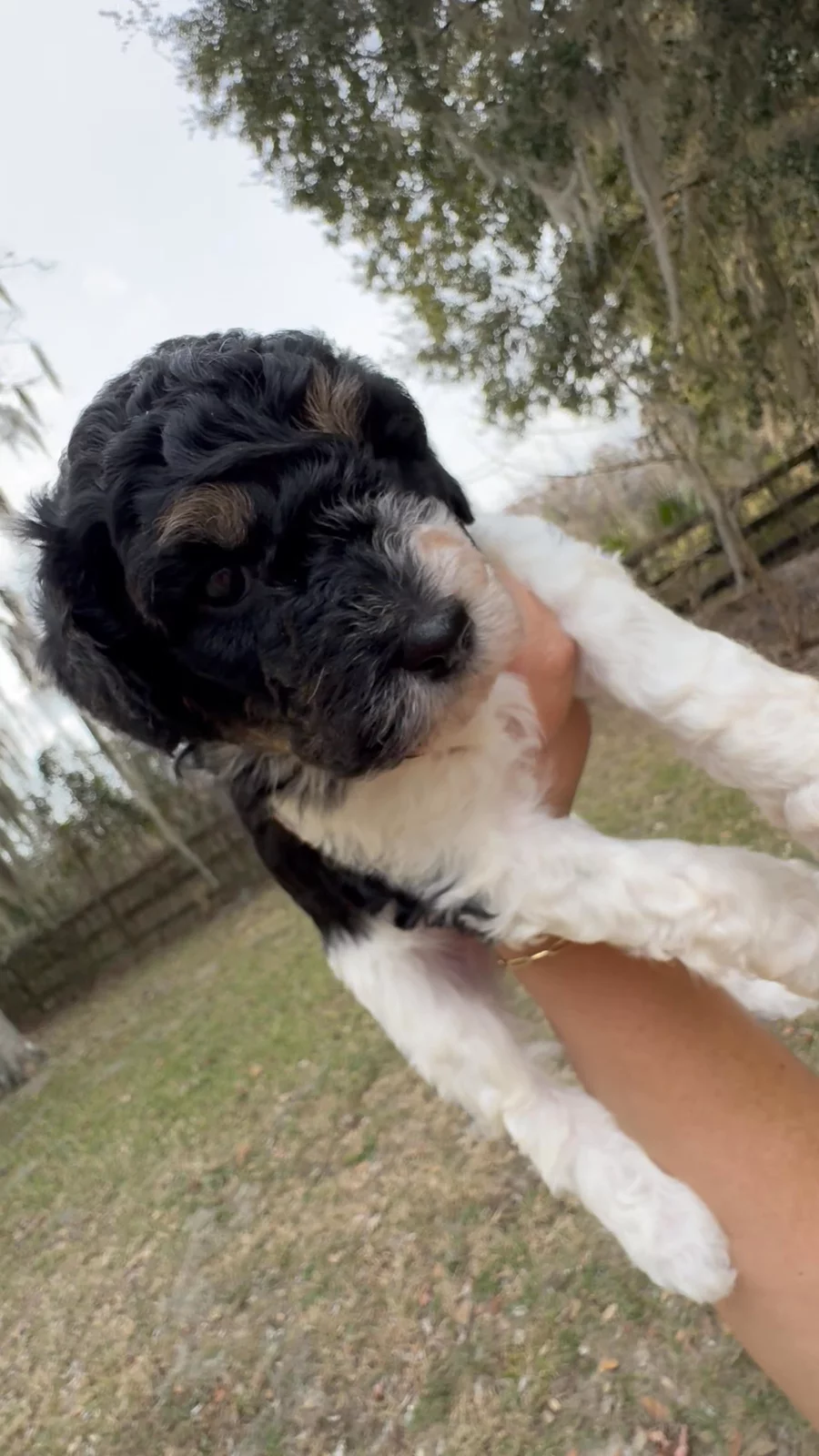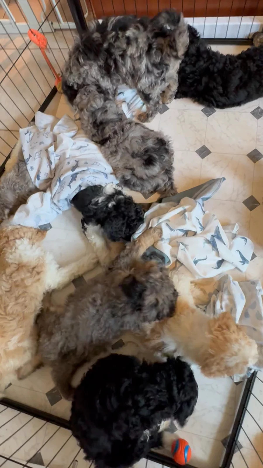 Moved into a bigger area. These puppies are in the heart of our home. Being played with and exposed to all sounds, smells, people, grooming, etc. personalities really starting to shine! Are you looking for a shy pup or and adventurous little pirate?