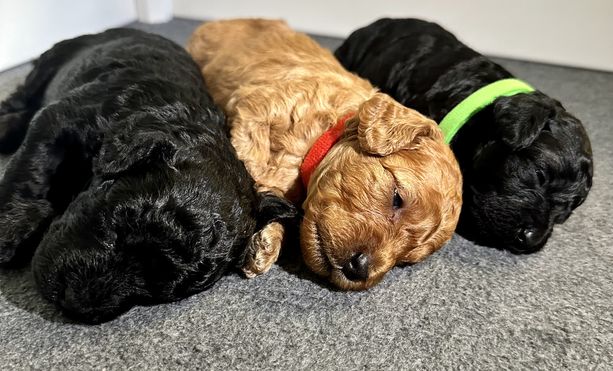 Our puppies include apricot, black, red, and phantom. Colors will vary depending on the parent dogs.