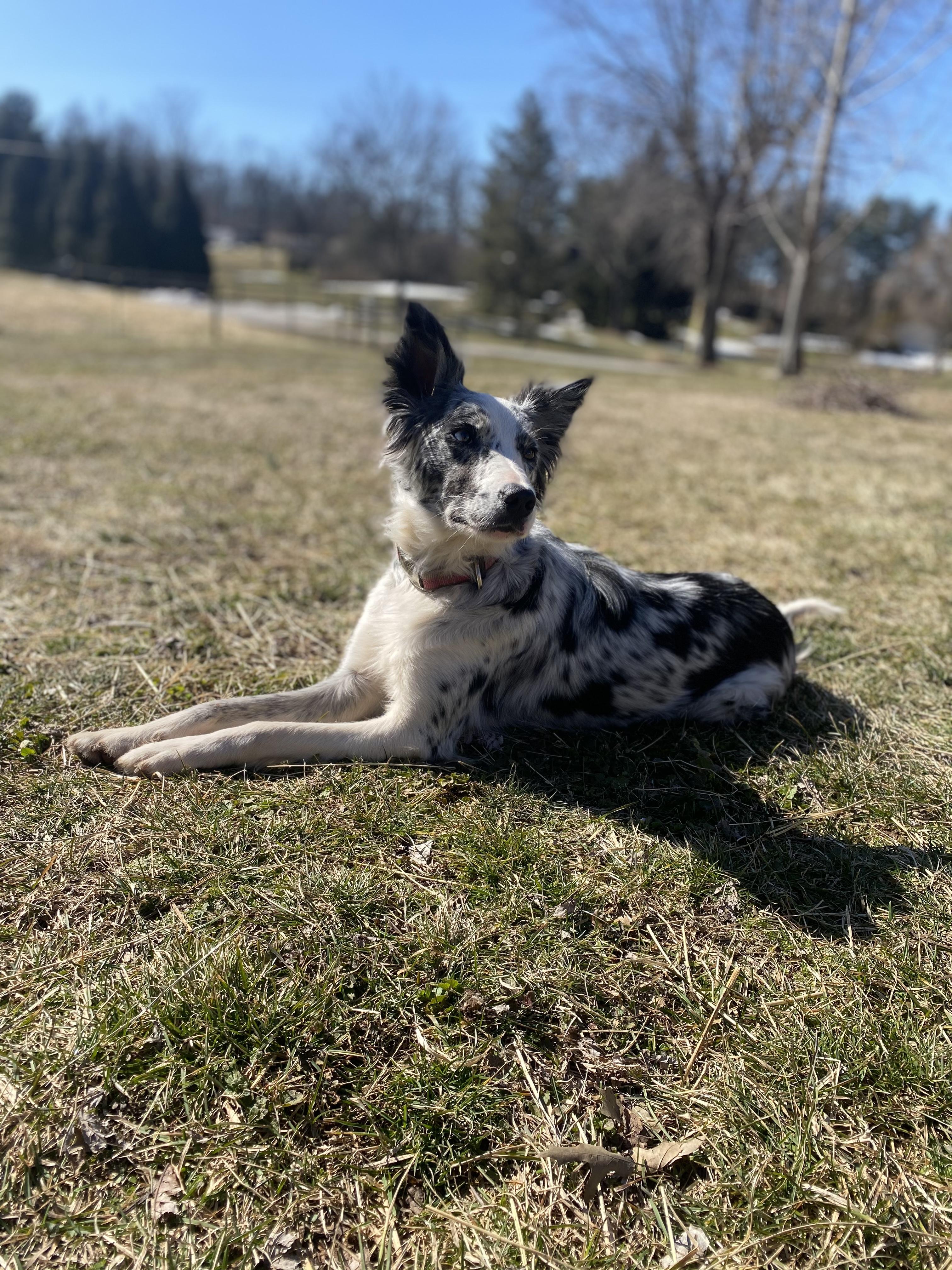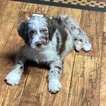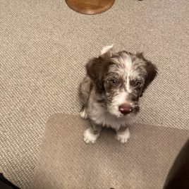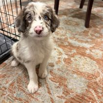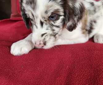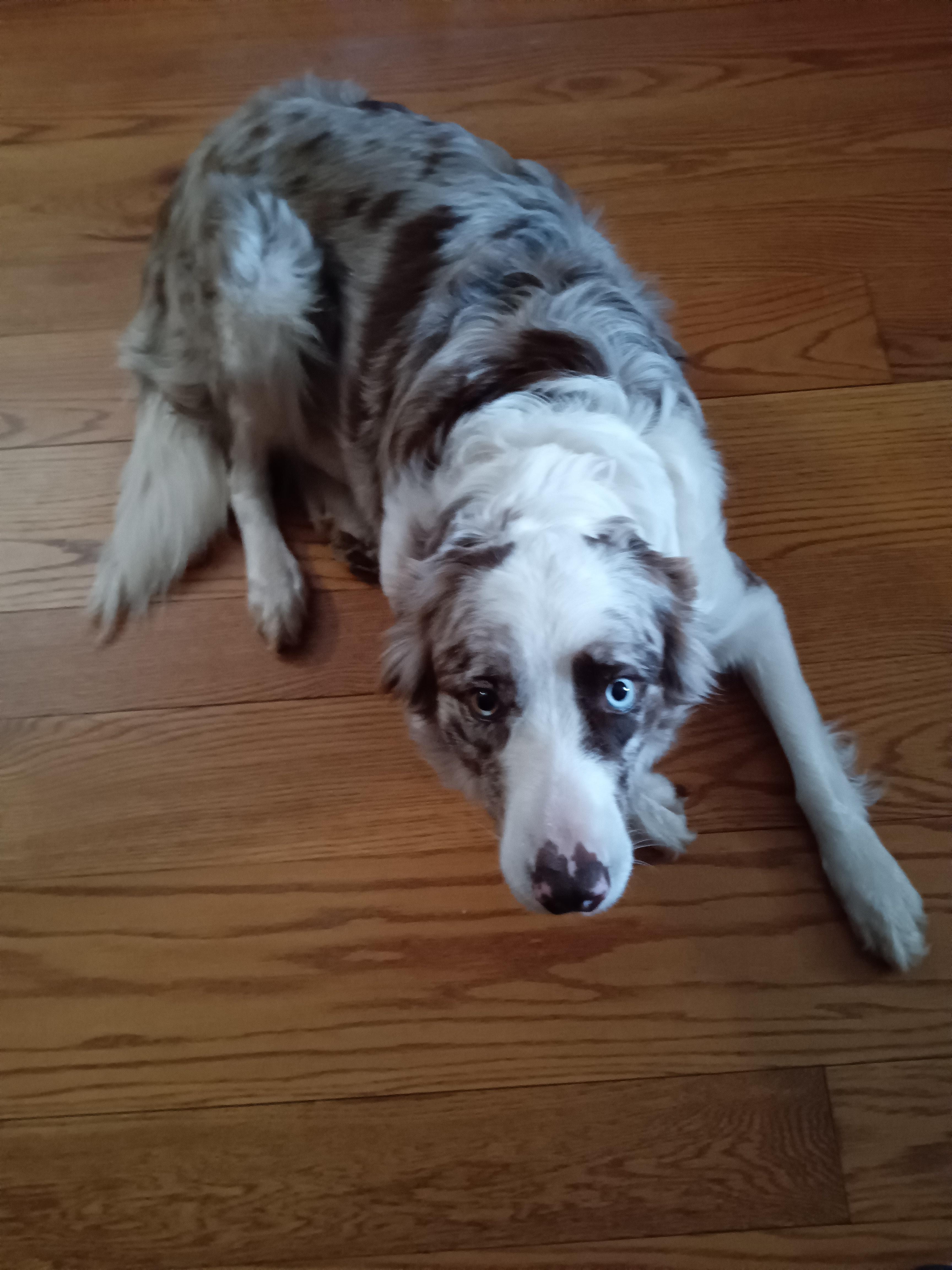 Oakley is a beautiful blue merle, very gentle, attentive and obedient. She has a good temperament, and disposition. She loves her family, exposed to many other animals, loves car rides, and playing ball