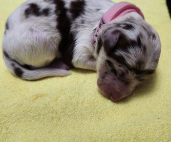 Foxy is a beautiful blue eyed red merle, She is very attentive , loving , very intelligent and has a great temperament .Loves everyone, one social girl.